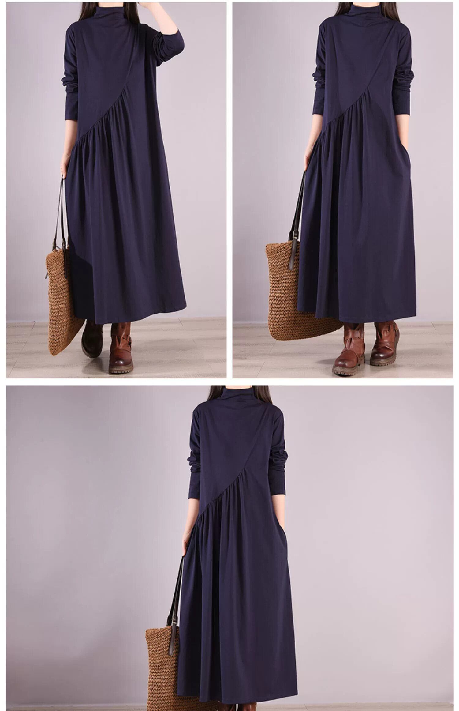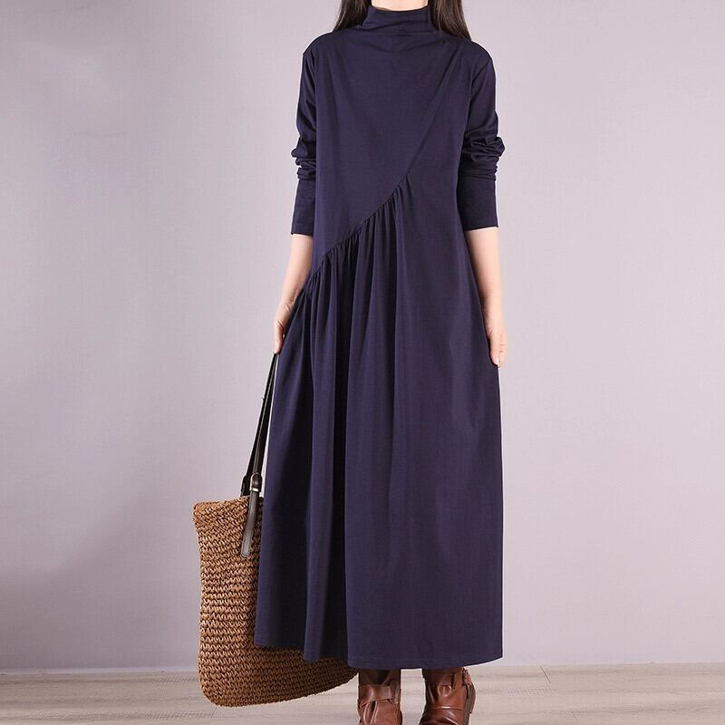 Eign Trade Export Big-name Tail Goods レディースクリアランスカジュアルハーフハイカラーボトミングロングスカートルーズニットコットン長袖ドレス sine24278888709