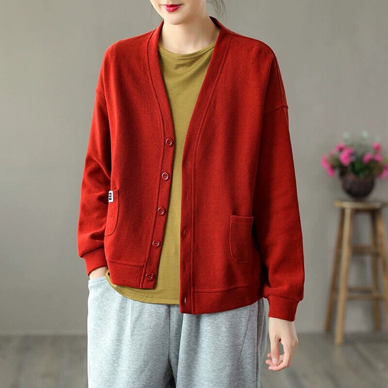 eign trade ese ビッグネームカウンターレディースカジュアル大きいサイズ V ネック長袖スウェットシャツルーズ痩身カーディガンジャケット秋 ロング 大きめサイズ オータム 秋物 Vネック sine35497105789
