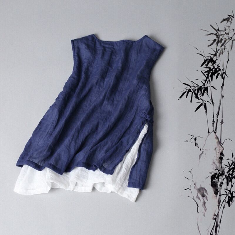 クリアランスリーク〜eseオリジナルシングルレトロバックルフェイクツーピースコットンとリネンサスペンダーTシャツレディースルーズリネンベストトップ sine16764526586