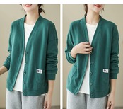 ese オリジナル eign trade 有名な女性の文学 V ネック長袖セータートップルーズソリッドカラーカーディガンセータージャケット ロング Vネック sine24027771698