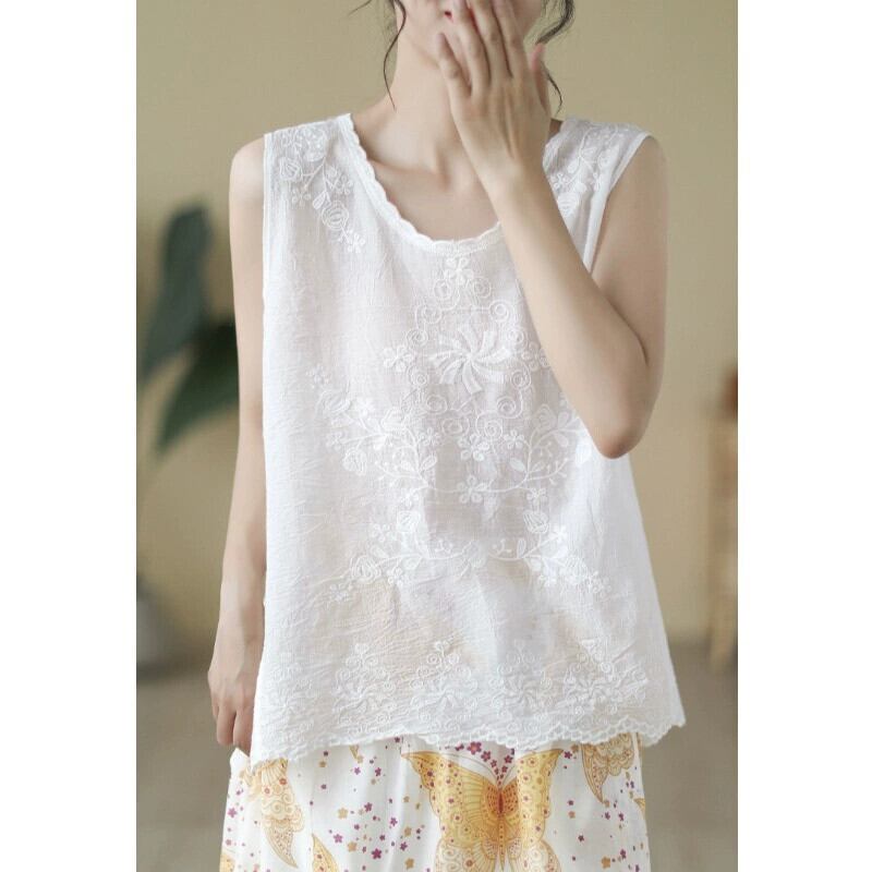 クリアランスブランド 牛グッズカウンター シングル レディース ノースリーブ 刺繍入り 薄手 トップス ゆったり 痩身 綿麻 キャミソール ベスト レッド コットン sine66043775051