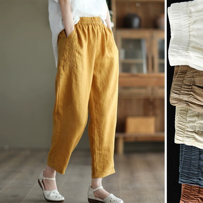 クリアランスブランド牛グッズカウンターシングルレディースハイウエストリネン9点キャロットパンツカジュアル刺繍コットンとリネンハーレムパンツ レッド sine94216039970