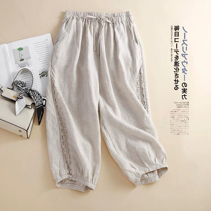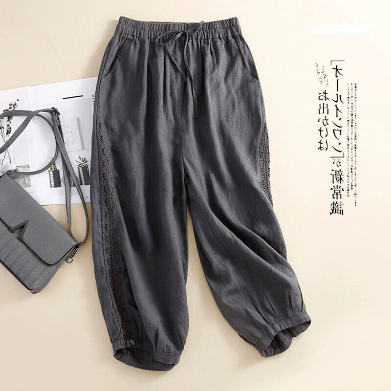 Eign trade 割引ブランドシングル女性のカジュアルレースレギンス綿とリネンのハーレムパンツルーズ薄いリネンクロップドパンツ コットン sine6074215346
