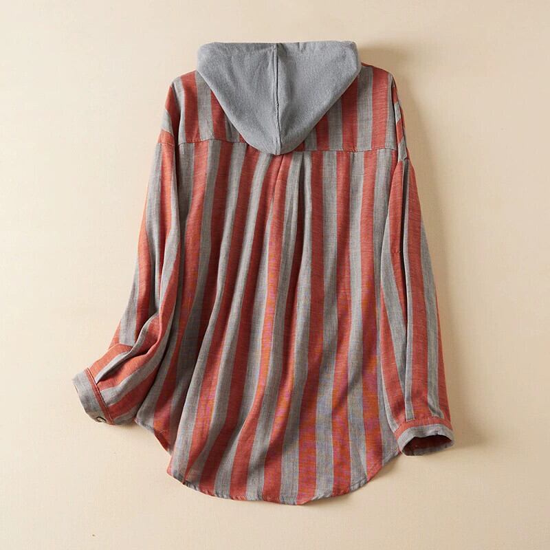 クリアランス漏れ〜カウンターに有名な既製品を置いた偽のツーピースのフード付きコットンスウェットシャツの女性、ゆったりとしたストライプの二重長袖ジャケット ロング sine26699177003