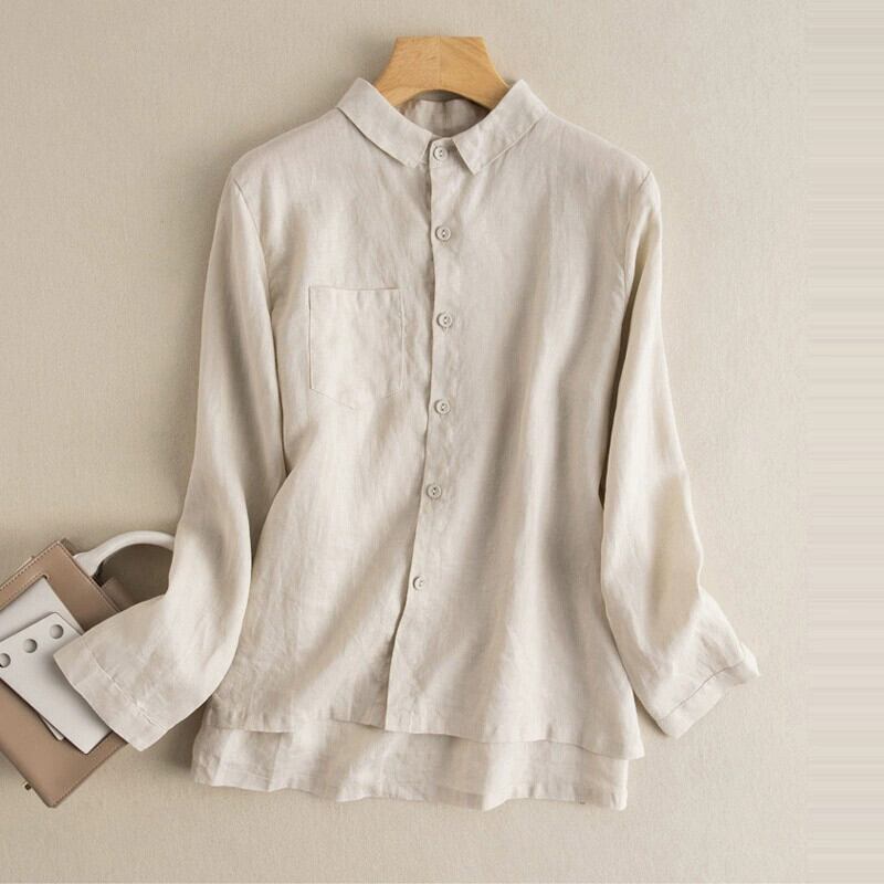 永貿易輸出ビッグブランドテールグッズ女性のクリアランス気質リネンカーディガントップ秋ルーズ痩身綿とリネン長袖シャツ ロング コットン オータム 秋物 sine12372271343