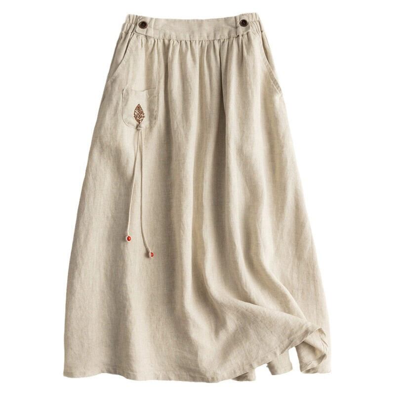 クリアランス漏れ〜カウンターは有名な女性のハイウエストのラミーの大きな裾のAラインスカート、カジュアルなルーズリネンの薄いスカートを撤回しました sine205674416