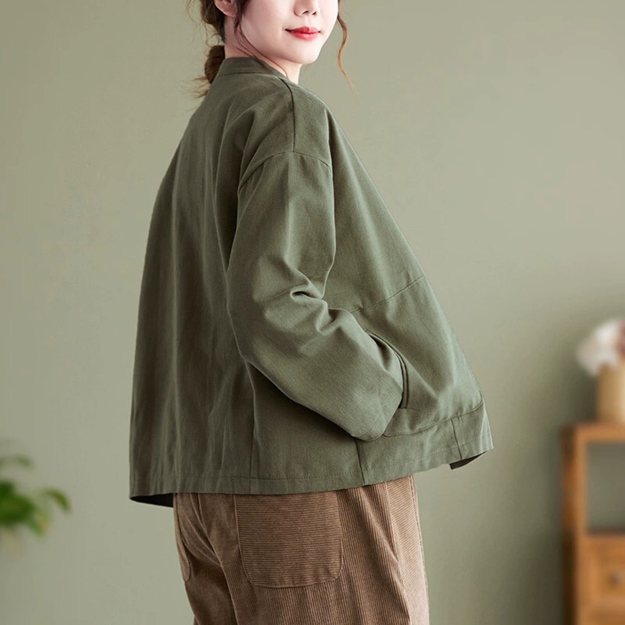 クリアランス漏れ〜既製品レディースカジュアルルーズツイルコットンショートコートルーズスタンドカラー長袖ジャケットトップ ロング sine33376545135
