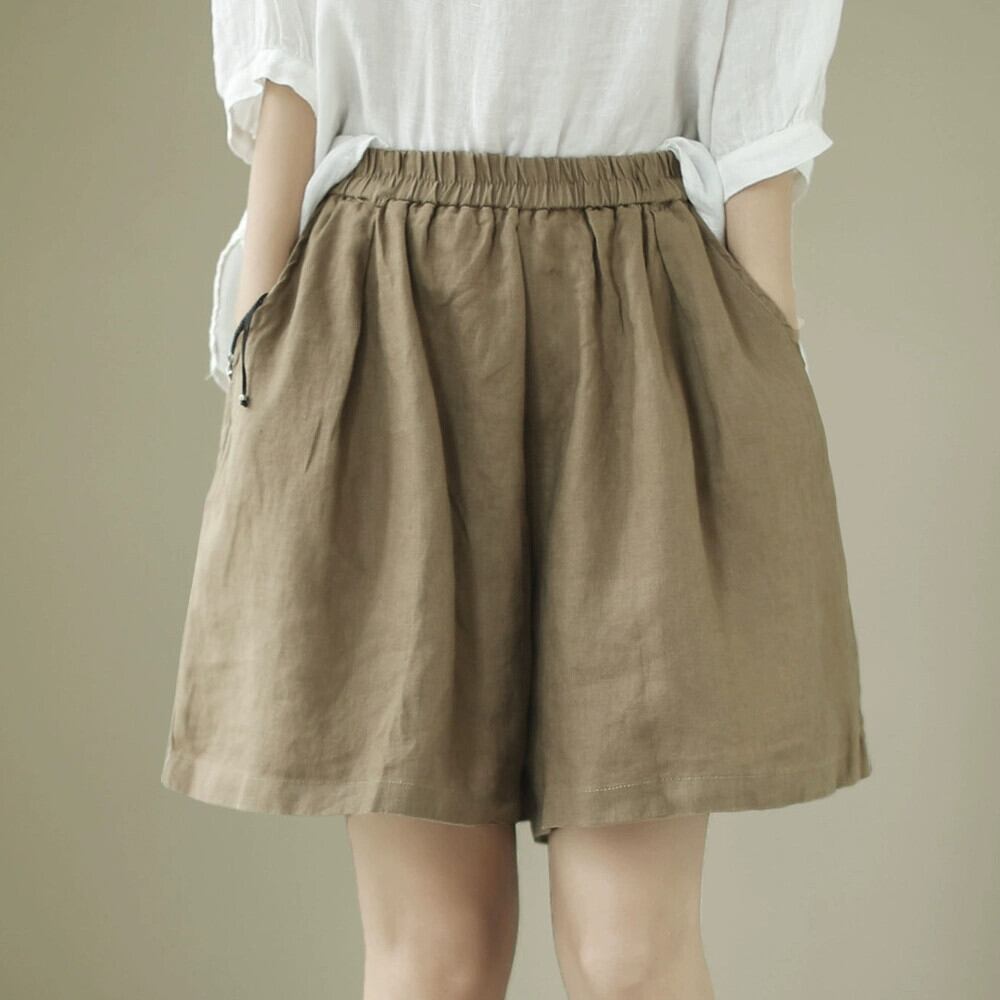Eign Trade 割引ブランド シングル レディース アーティスティック ハイウエスト リネン ワイドレッグ パンツ カジュアル スリミング コットンとリネン 5 点パンツ ショートパンツ ショーツ ブルマー sine70310802449