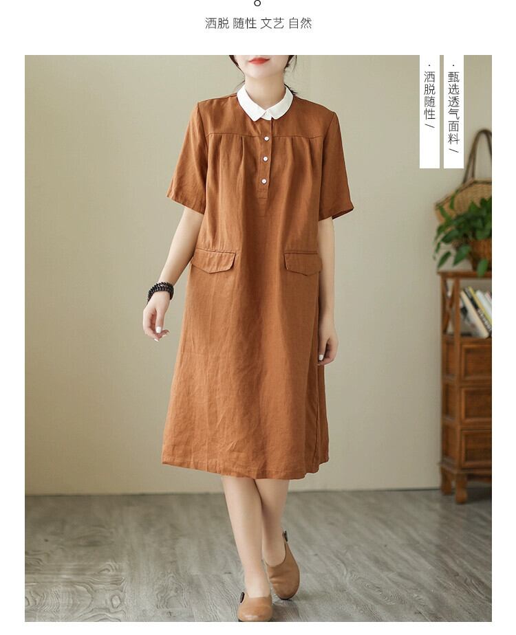 eign trade ese big-name カウンター レディース レトロ ドールカラー リネン ミッドレングス スカート ルーズ コットンとリネン シャツドレス sine14841274273