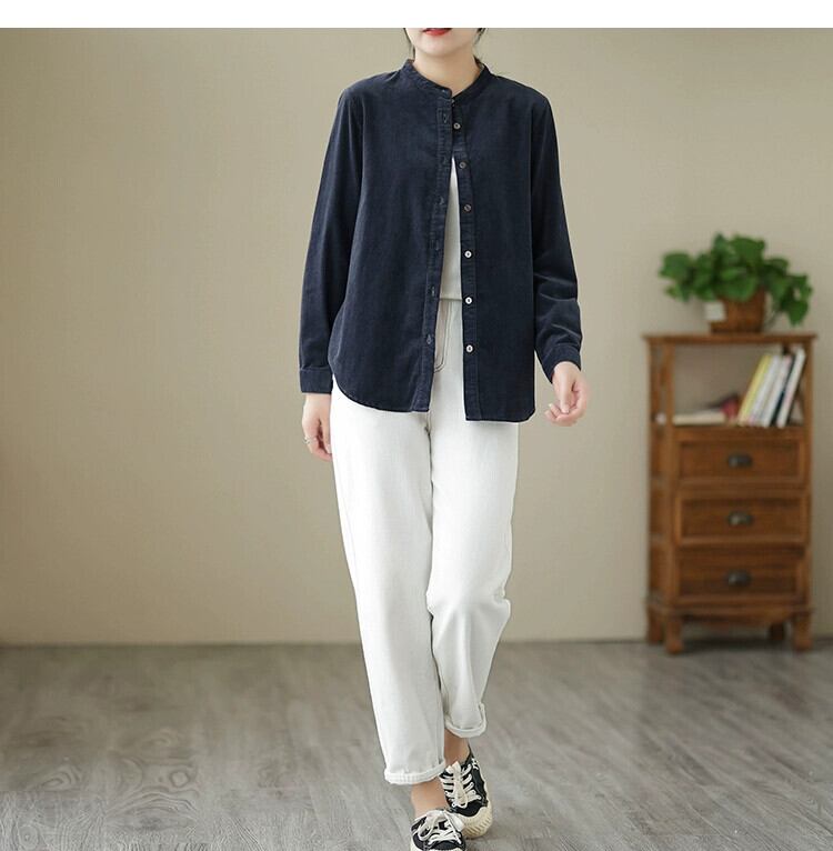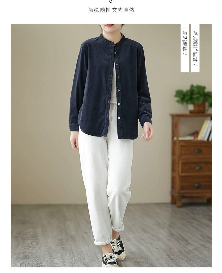 クリアランスリーク〜eseオリジナルカジュアルコーデュロイジャケットトップ女性ルーズ痩身ファインコーデュロイスタンドアップカラーシャツ sine12714018334