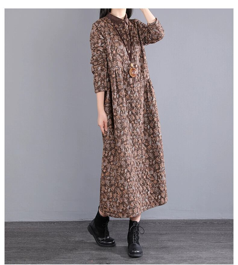 モールの有名人がカウンター商品から撤退商品の女性のカジュアルなレトロな花柄の厚いドレス暖かいキルティングシャツ綿の服 コットン sine34010181866
