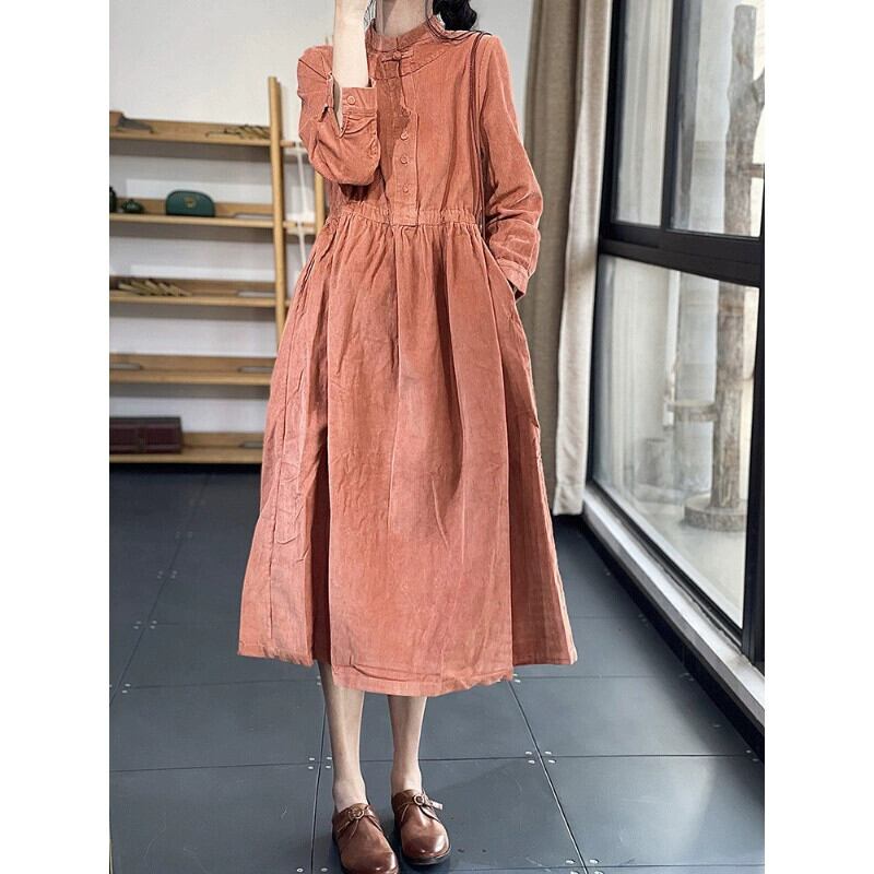 貿易輸出有名品クリアランス品大きいサイズルーズコーデュロイシャツロングスカートカジュアルスリム長袖ワンピース 大きめサイズ sine3272802778