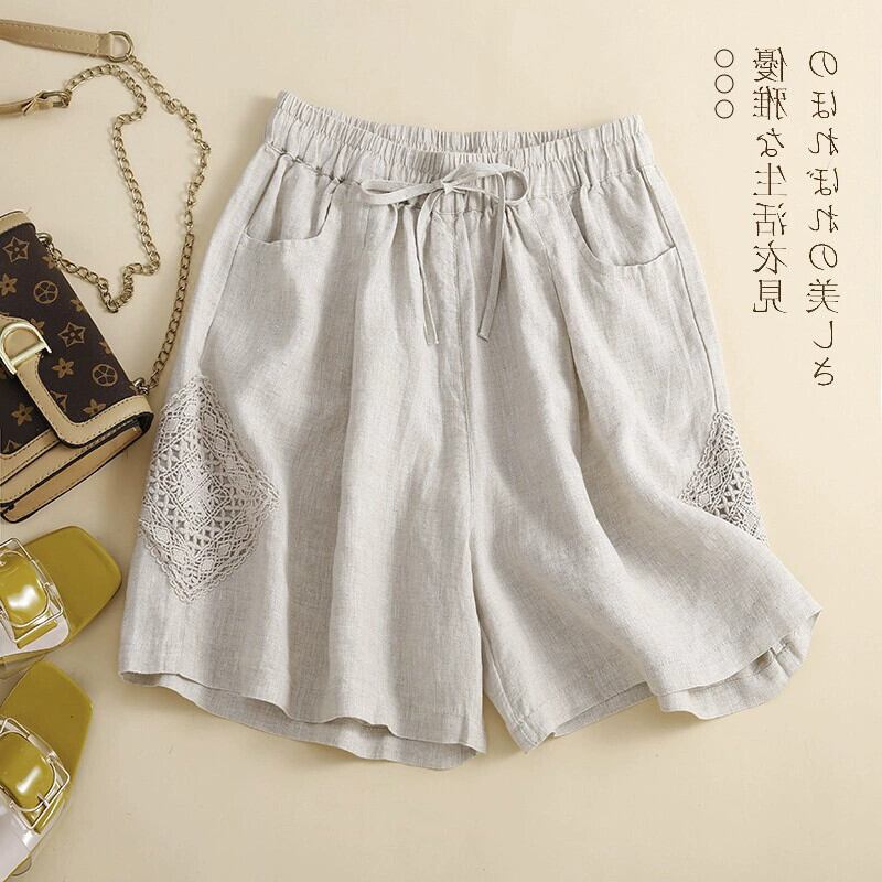 Eign Trade Export Big-name Last Order 撤回レディースレトロ中空レースリネンショートパンツカジュアルコットンとリネンのワイドレッグパンツ ショーツ ブルマー sine58964491539
