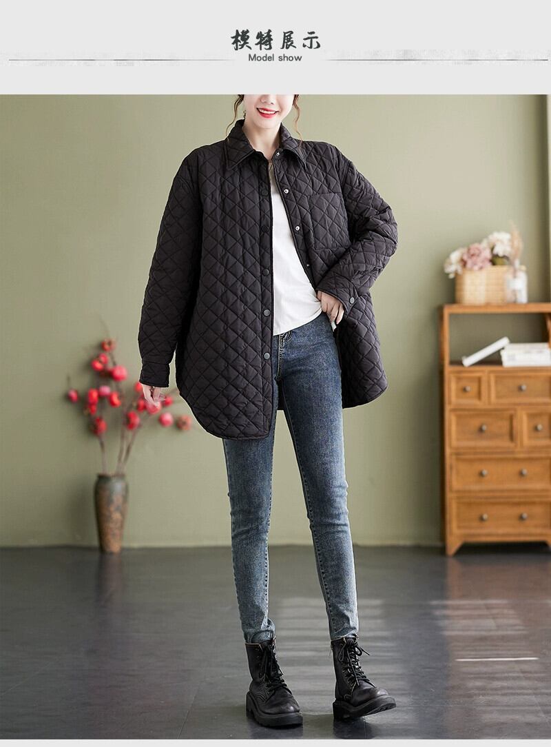 eign trade 輸出ブランドテールグッズ女性のキルティング肥厚暖かい綿コートレトロ菱形ミッドレングスダウンジャケット コットン sine48675609682