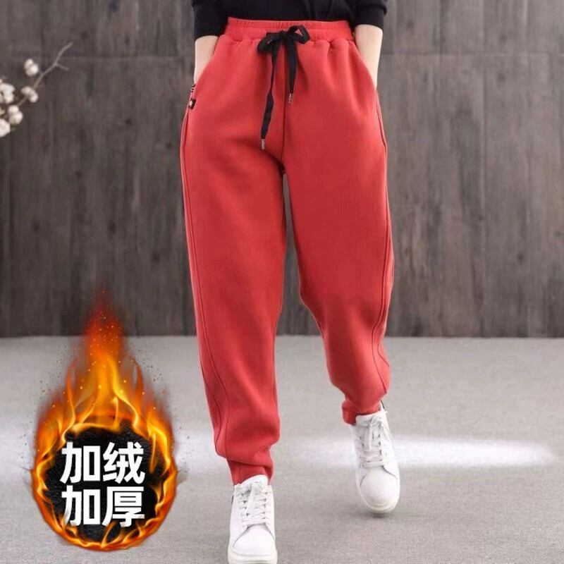 Eign Trade Export Big Tail Goods Women's Clearance Plusベルベット肥厚スウェットパンツ冬ルーズカジュアル巾着ハイウエストハーレムパンツ ハイウェスト ウィンター 冬物 sine85353058846