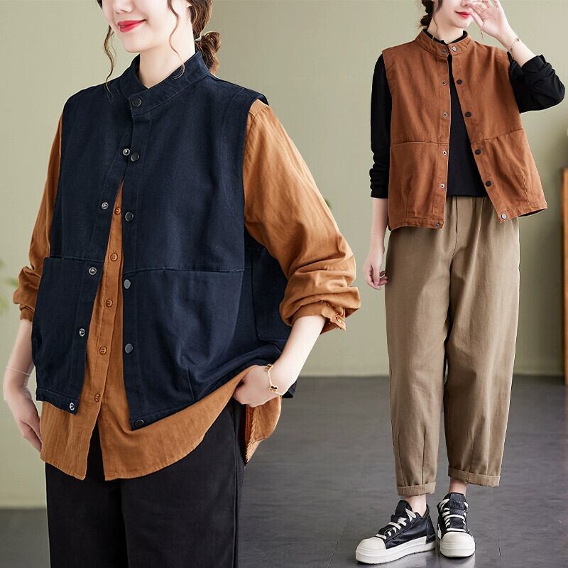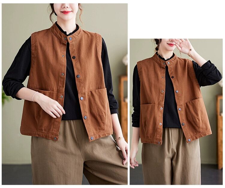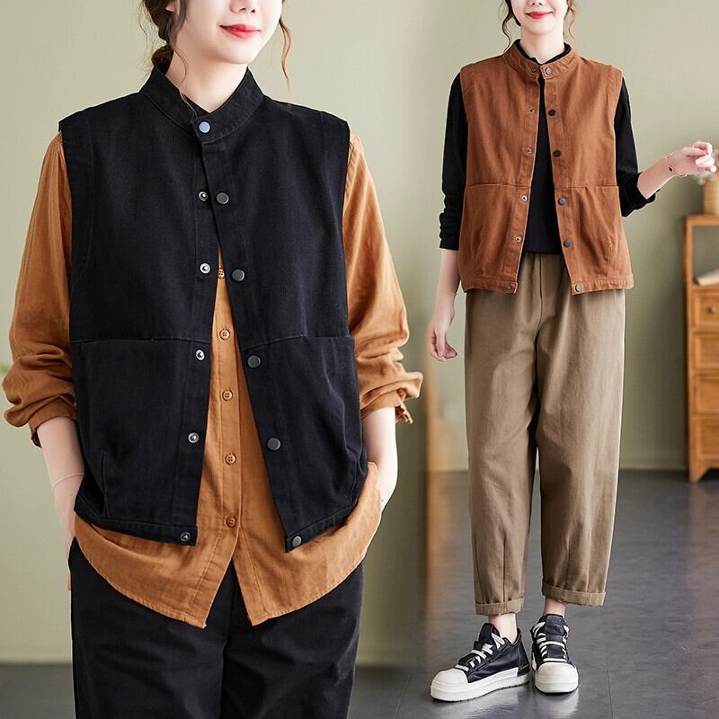 第一線ブランド eign trade 最終在庫レディースカジュアルレトロシングルブレストベストジャケットルーズノースリーブコットントップ sine38180663047