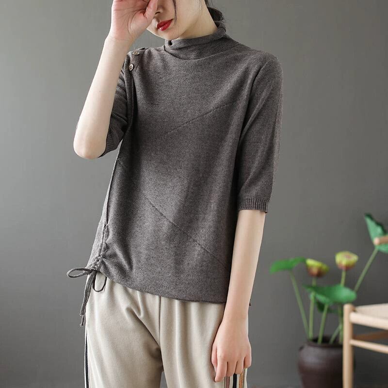 ese オリジナル eign trade ブランドレトロニットボトミングシャツ女性のトップルーズミッドスリーブプルオーバーハーフタートルネックセーター sine32188043014