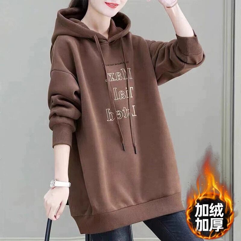 クリアランスリーク〜レディース最終在庫レディースベルベット厚手の長袖スウェットシャツ、ゆったりとしたミドル丈のフード付きトップス ロング sine82205880959