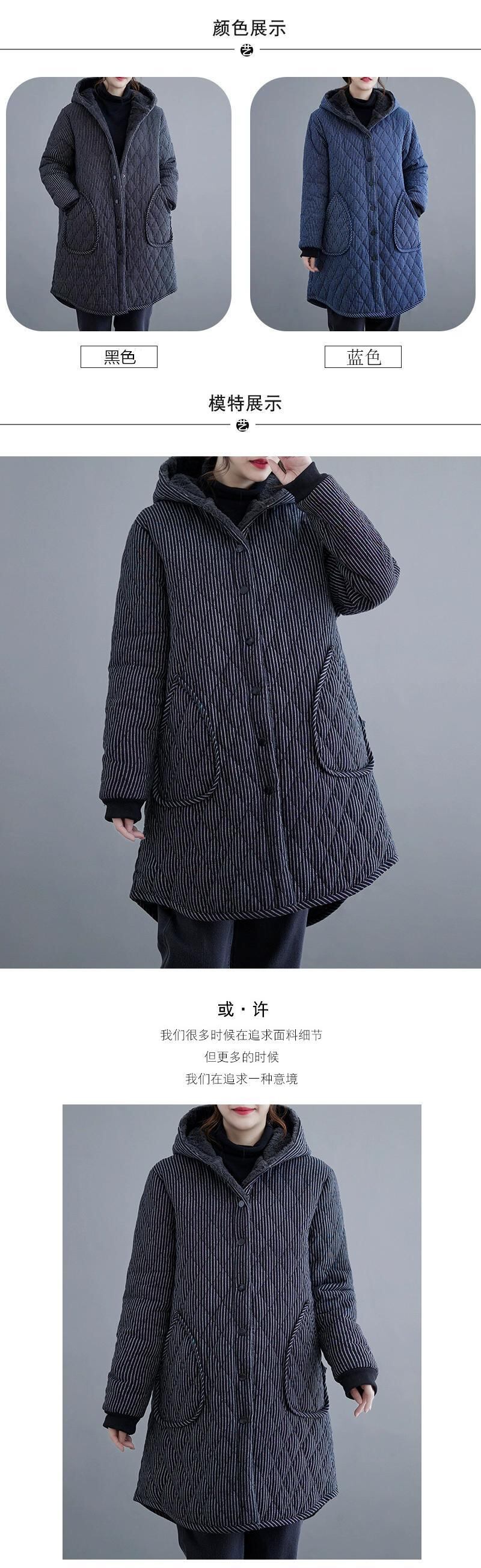 eign trade 割引ブランドテールグッズ女性のレトロキルティングミッドレングスコットンコート肥厚暖かいストライプフード付きコットンコート sine66710475650