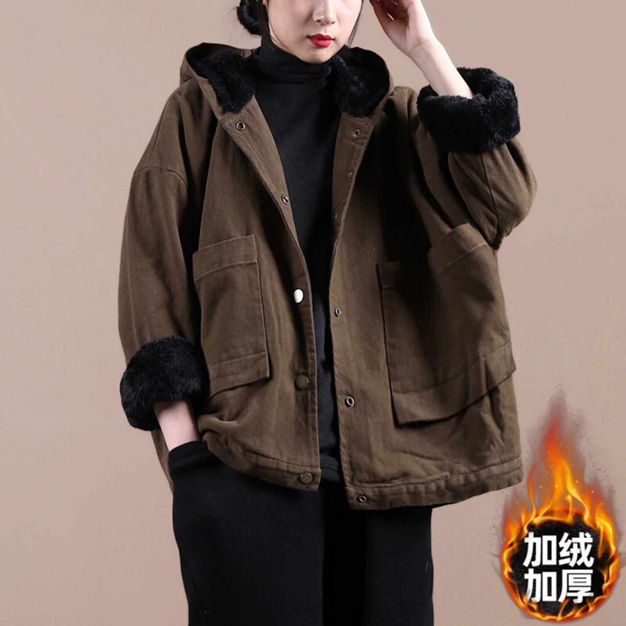 カウンタークリアランスクリアランスレディースラージポケットウォームスウェットシャツジャケットレトロプラスベルベット厚みのあるフード付きコットンパッドジャケット sine289522811
