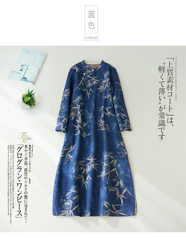 牛クリアランスのハイエンドテールグッズ、女性の中国風プリントバックルチャイナドレス、ベルベットの厚みのあるコットンとリネンのドレス スカート sine95005561298