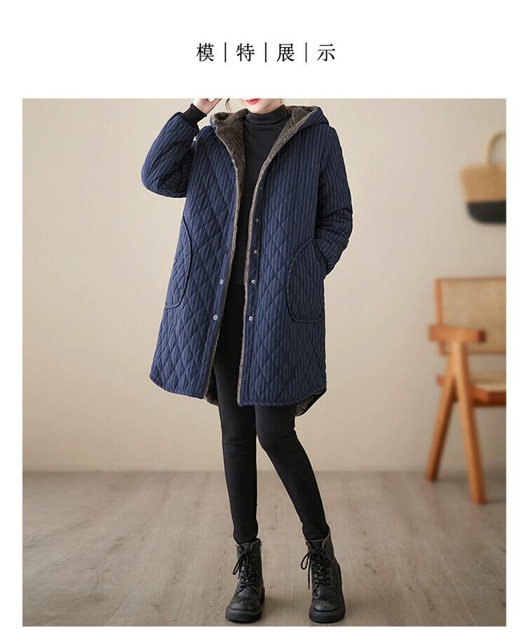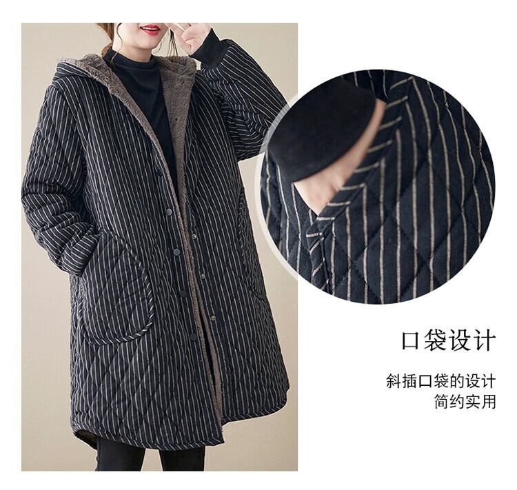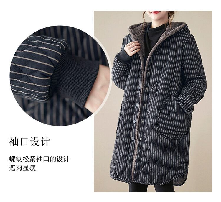 eign trade 輸出ブランドテールグッズ女性のレトロコーデュロイミッドレングスコットンコートルーズキルティング肥厚フード付きコットンコートジャケット sine30841227705