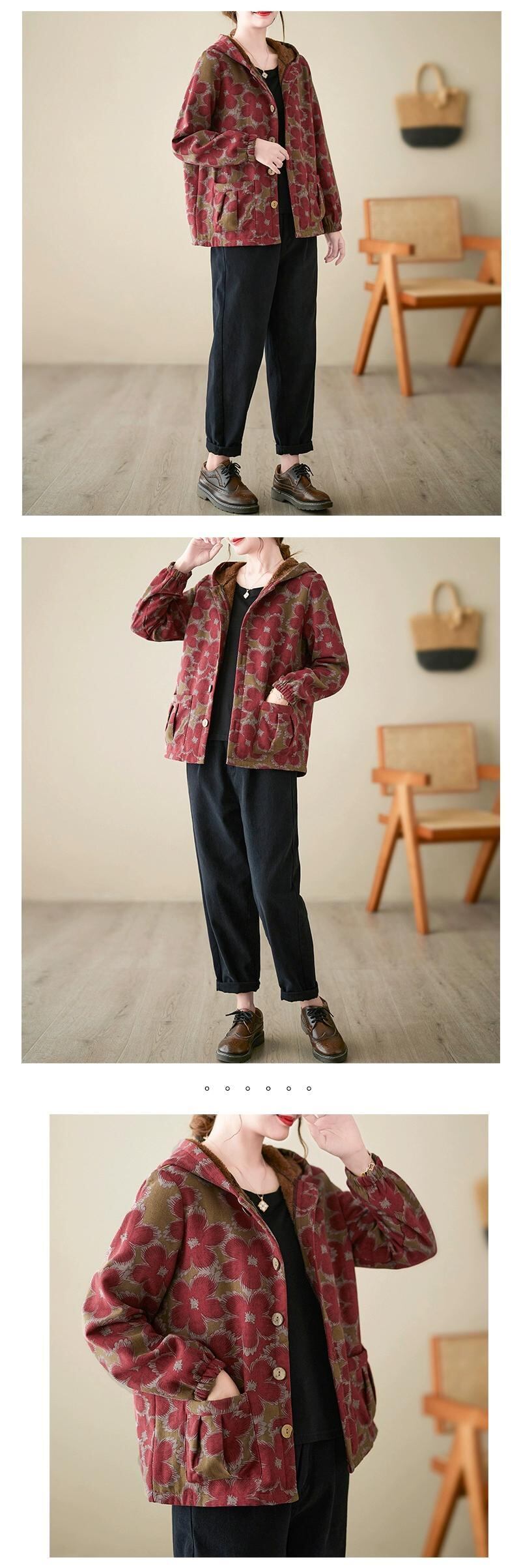 ディスカウントストアショッピングモールの女性のエスニックスタイルプリント小さな綿パッド入りジャケット大きいサイズプラスベルベット肥厚フード付き綿パッドジャケット コットン 大きめサイズ sine64523148843