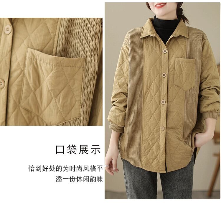 第一線のブランド eign trade 撤退最後の在庫の女性の冬のレトロなスプライシング ラペル シャツ ジャケット ルーズ肥厚暖かい綿のコート コットン ウィンター 冬物 sine74688271641