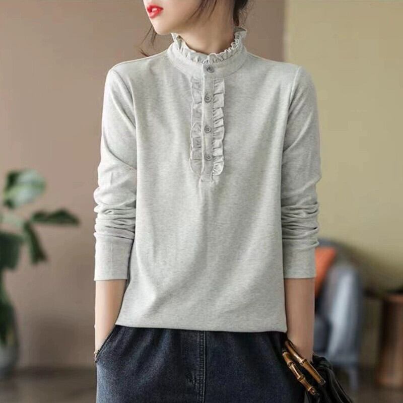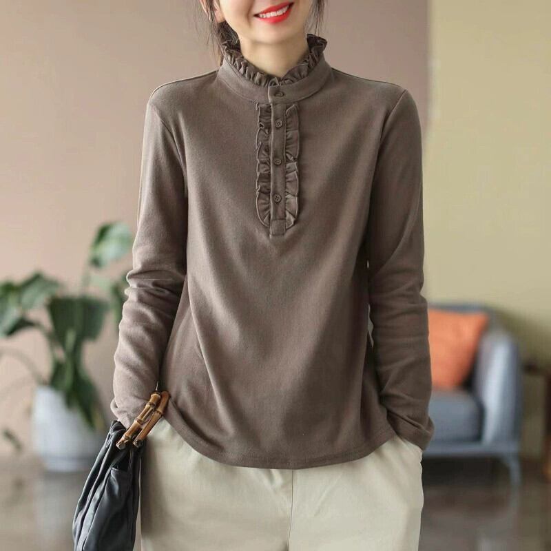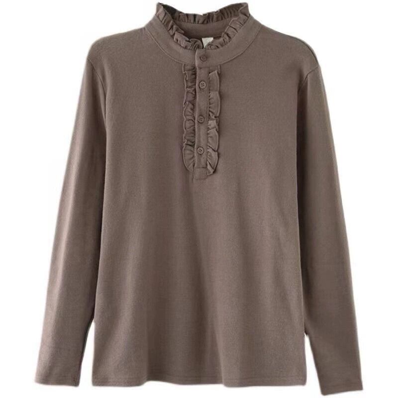 ディスカウントストアショッピングモール撤退婦人服レトロ菌類長袖ボトムシャツルーズハーフタートルネックトップTシャツ ロング sine41845068781