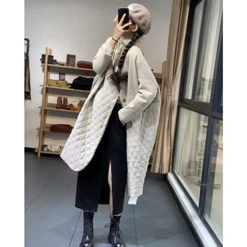 クリアランスカウンター除去ビッグブランドテールレディースレトロ菱形キルティングウインドブレーカーコートゆったりとファッショナブルな V ネックウールコート Vネック sine37374285626