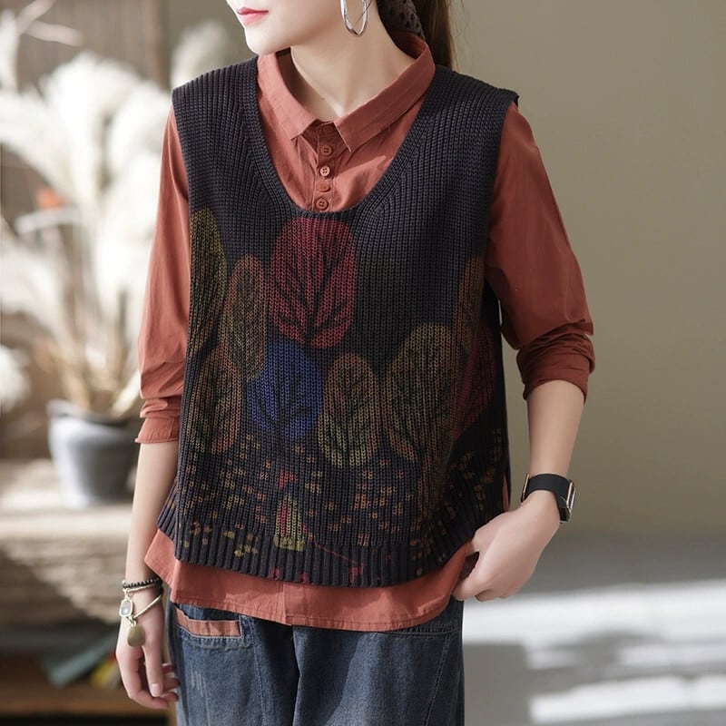 eign trade ese オリジナル注文ビッグブランド撤退女性のレトロプリントベストプルオーバートップルーズチョッキセーターベスト sine9142256307
