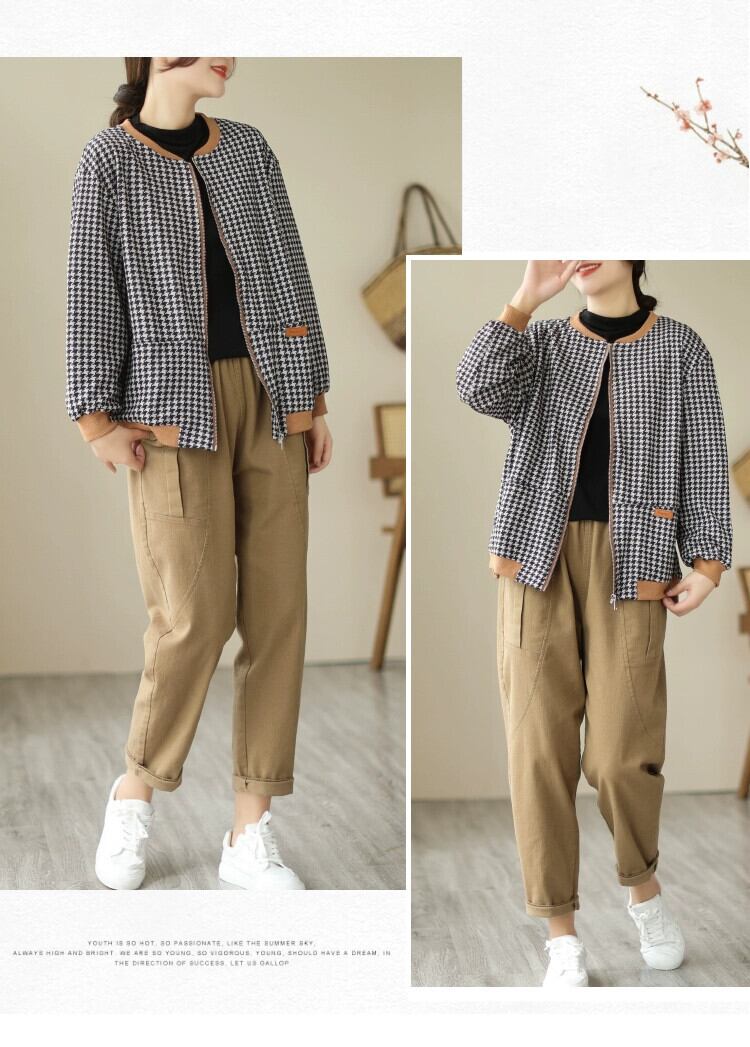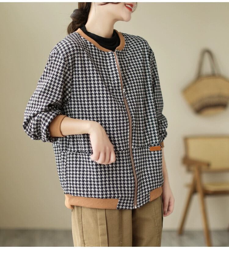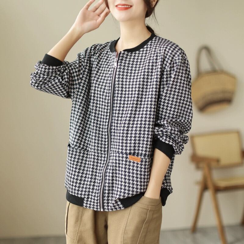 ディスカウントストアショッピングモール撤退女性のレトロ千鳥格子野球ジャケットルーズカジュアル長袖カーディガンスウェットシャツ ロング sine14741461870