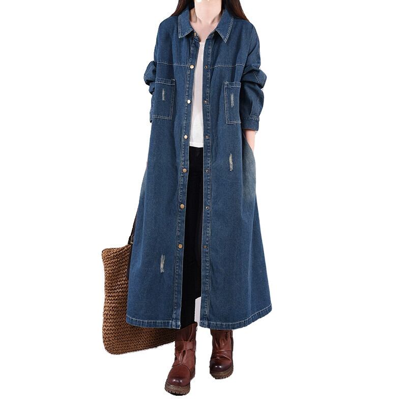 クリアランス漏れ〜カウンタービッグブランド牛レディースレトロロングデニムシャツジャケットルーズカジュアルカーディガンウインドブレーカー sine34828226361