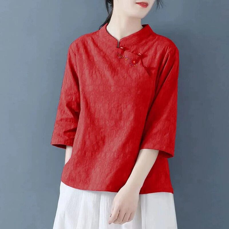 eign trade 割引ブランドテールグッズ女性の中国風リネン半袖シャツルーズスタンドアップカラーコットンとリネンのティートップ sine80723566193