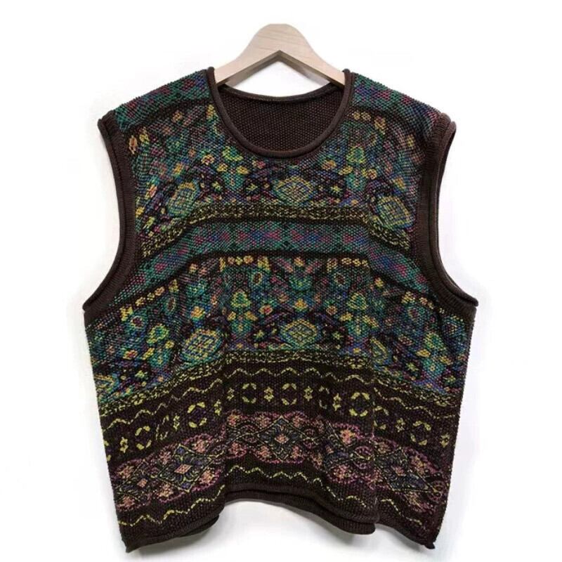 クリアランスカウンター最後の在庫の引き出し女性のレトロプリントチョッキプルオーバーベストトップ大きいサイズの綿ニットベスト コットン 大きめサイズ sine10104066647