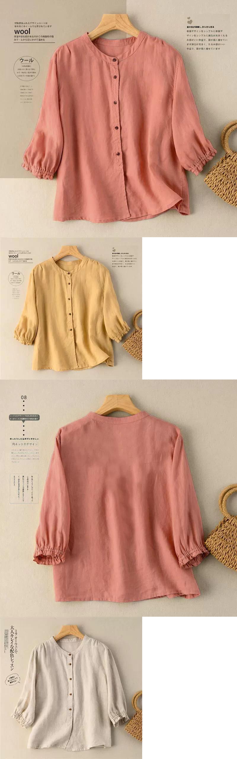 Eign Trade Export Big Tail Goods レディースクリアランスレトロリネン七分袖シャツカジュアル薄手コットンとリネン半袖トップ sine90587912066