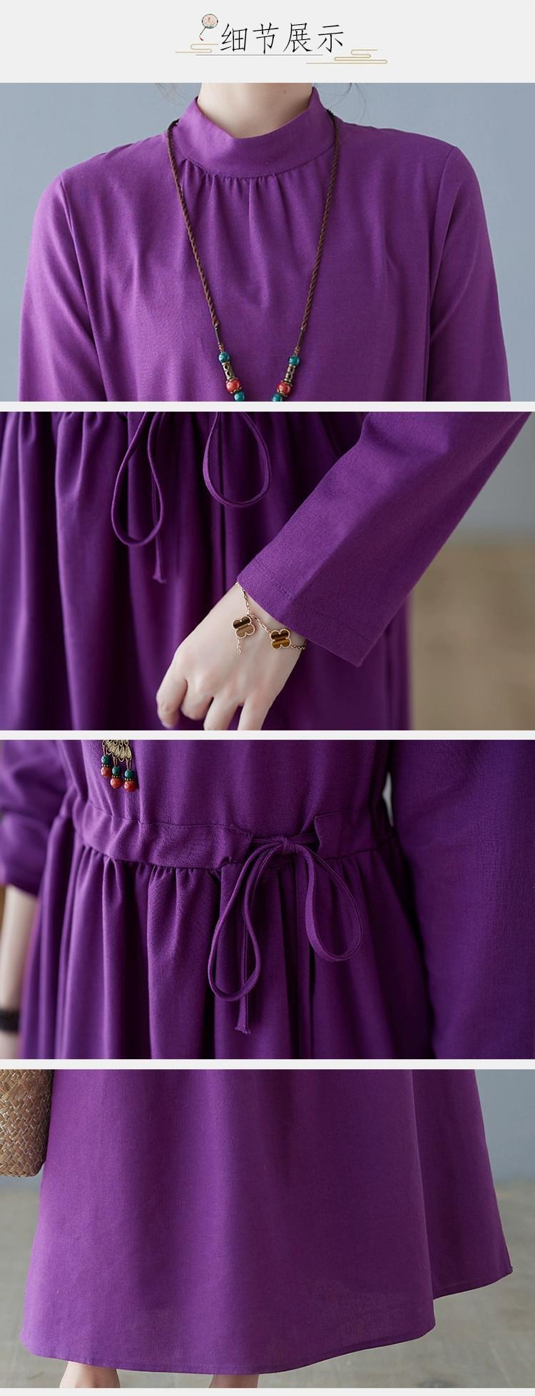 Eign Trade Counter ブランドテールグッズ春と秋のスタイルの芸術的なレトロなリネンのドレスルーズウエストレースアップ綿とリネンのロングスカート コットン スプリング 春物 オータム 秋物 sine18982135298