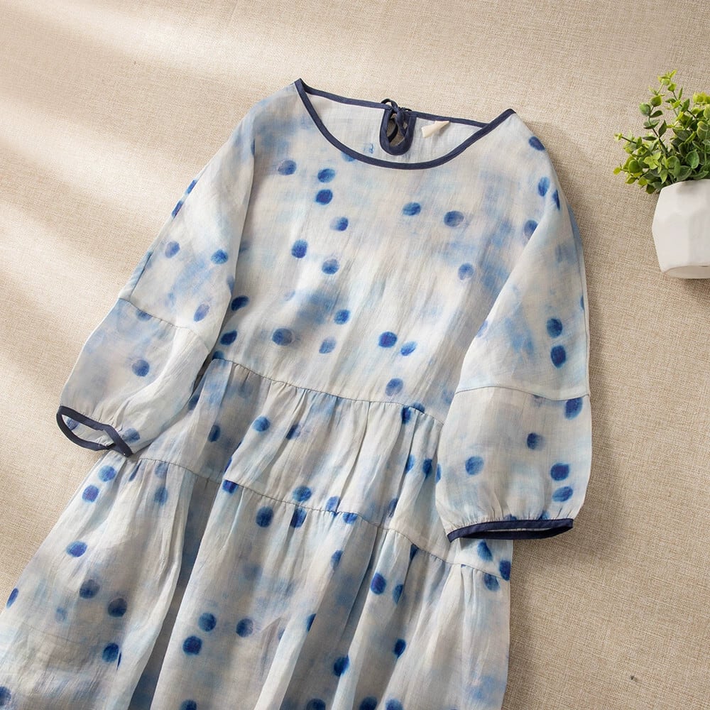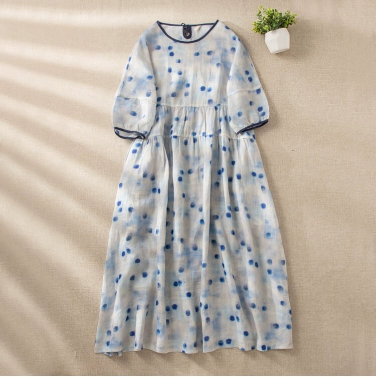 大手ブランドテールグッズのクリアランスカウンター撤去レディースゆったり大きいサイズレトロ水玉綿麻半袖ロングスカート コットン 大きめサイズ sine7186091097