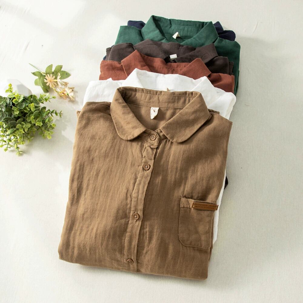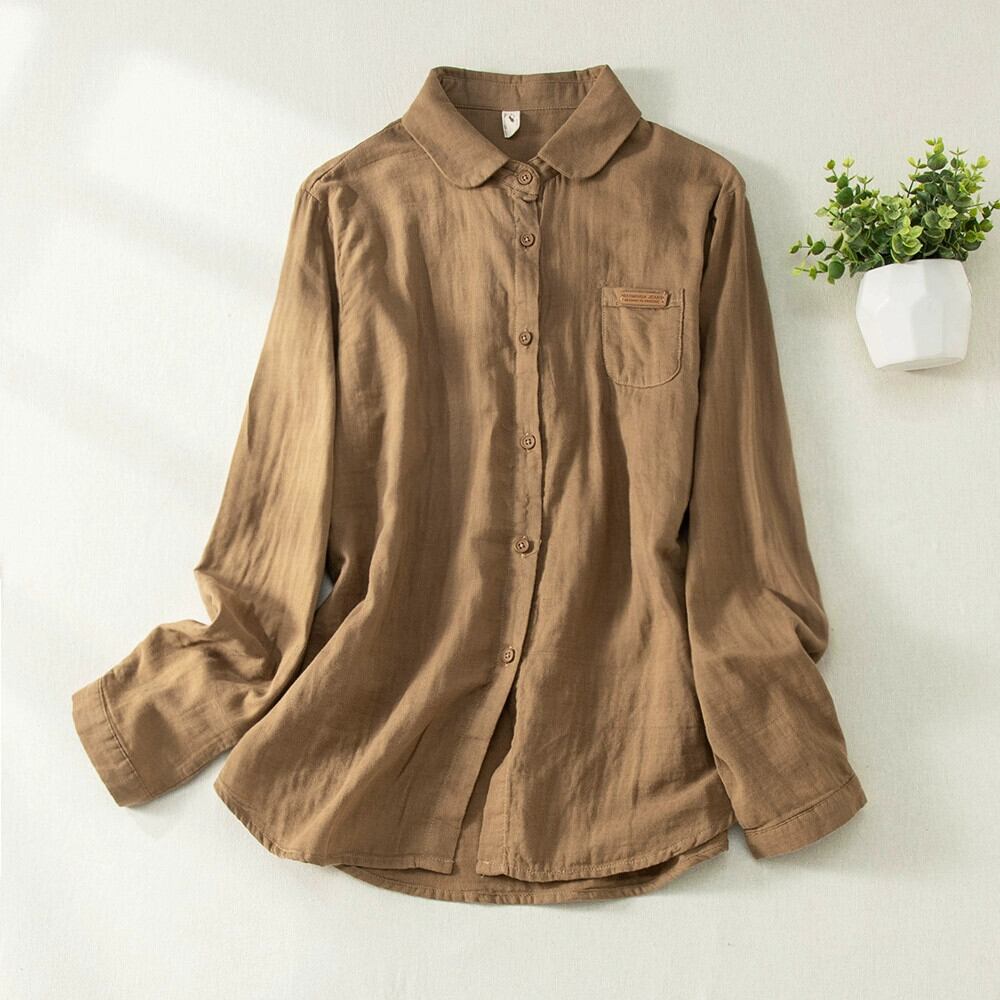 クリアランス漏れ〜シンプルで多用途な長袖シャツレディース、ゆったりとしたカジュアルな二層綿糸シャツトップ、カウンターで販売 ロング コットン sine47105701964