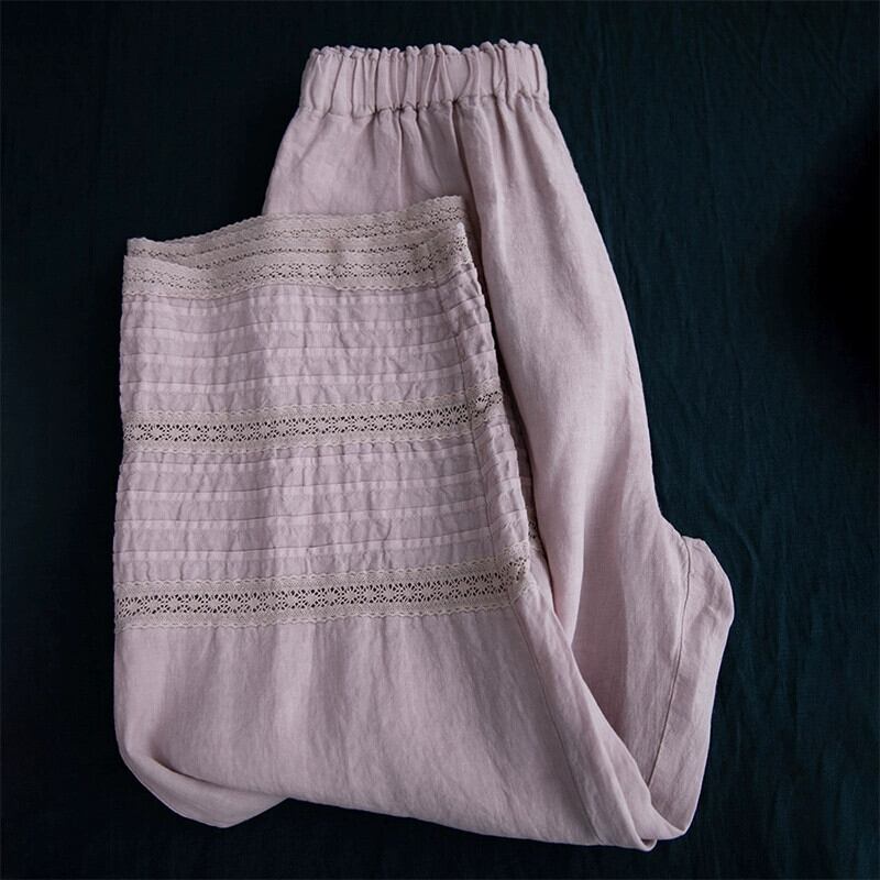 クリアランスカウンター、ビッグブランドテールグッズ、eseリネンワイドレッグパンツレディース、ハイウエストカジュアルストレートレッグコットンとリネン9ポイントパンツ、薄手 sine69783335667
