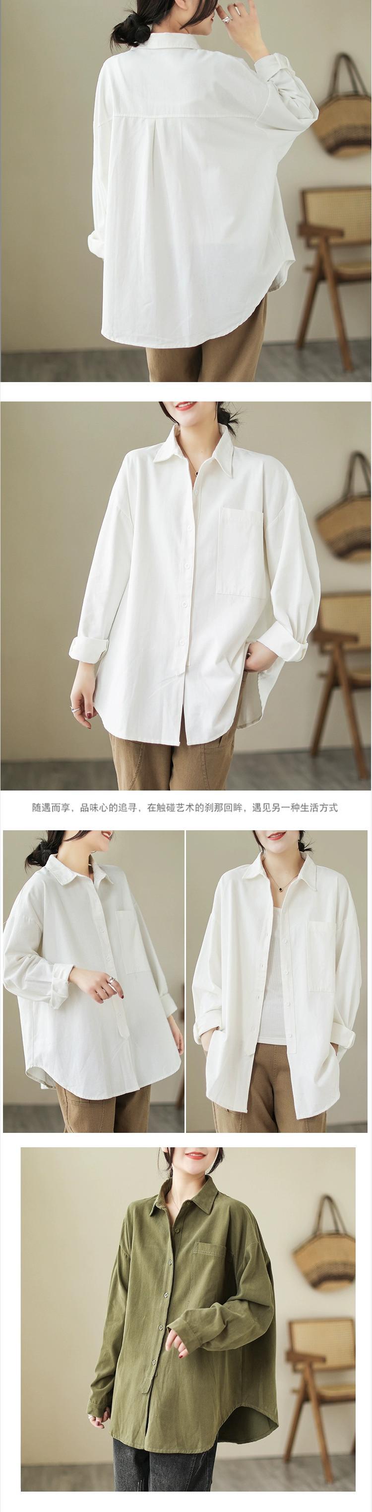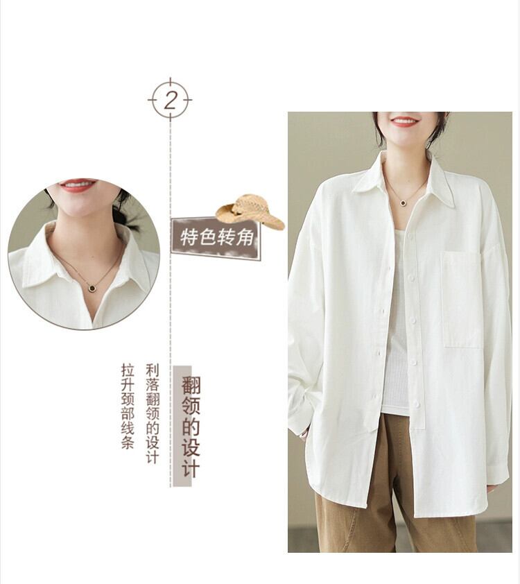 モールの有名人がカウンターから商品を引き出した女性の無地の綿の長袖シャツ、ルーズな作業服、大きなポケットのカーディガントップ ロング コットン ソリッドカラー sine59860965055