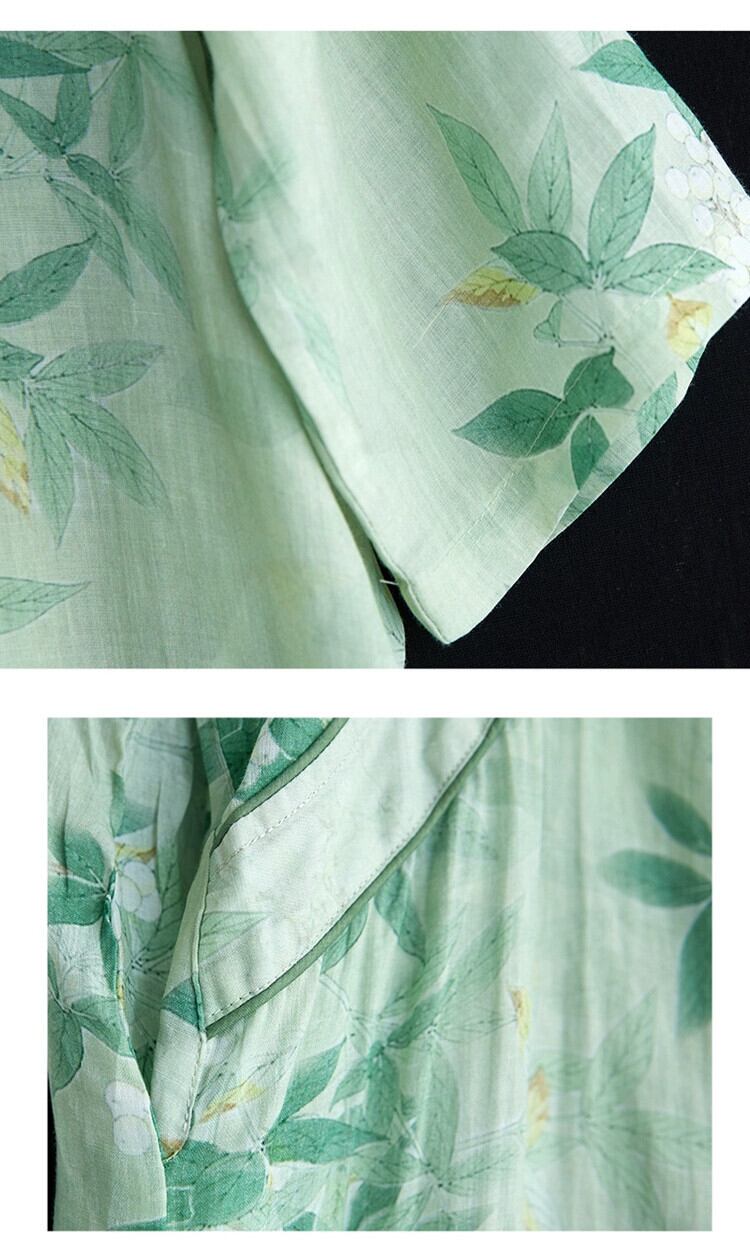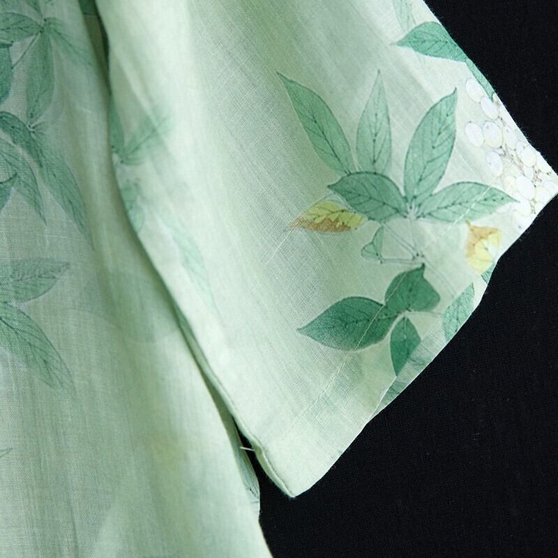 クリアランス漏れ ~ カウンターからの最後の在庫、女性用中国風プリントの改良チャイナドレスのミモレ丈スカート、ゆったりとしたラミーの半袖ドレス sine49177151056