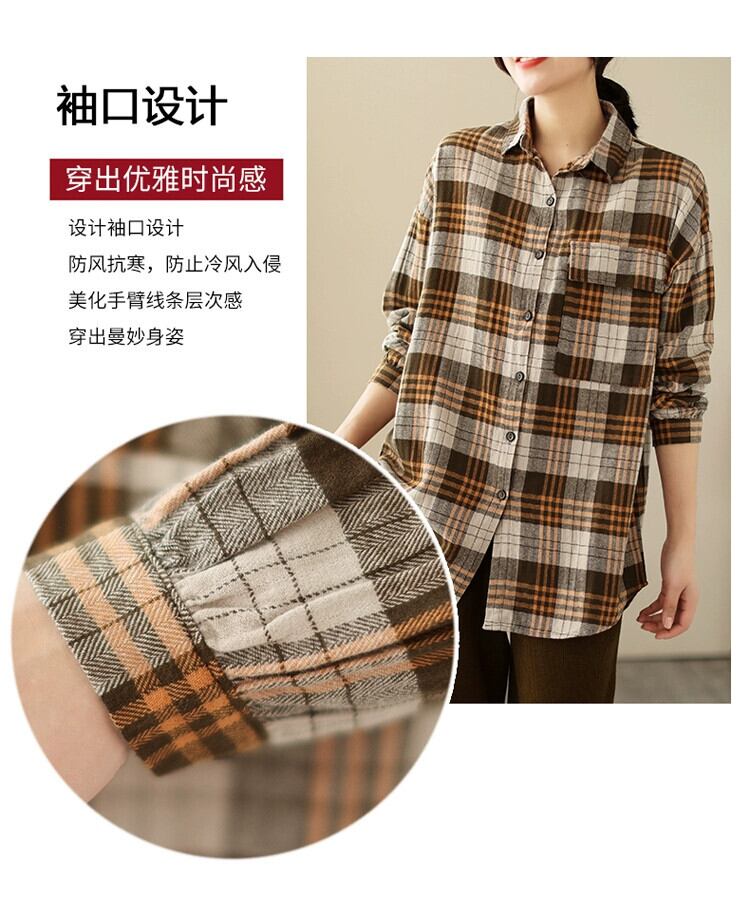 エドキャトル クリアランス ハイエンド テール グッズ レディース 春と秋 レトロ チェック柄 コットンとリネン シャツ ルーズ カジュアル 長袖 トップス ロング スプリング 春物 オータム 秋物 sine59304169001