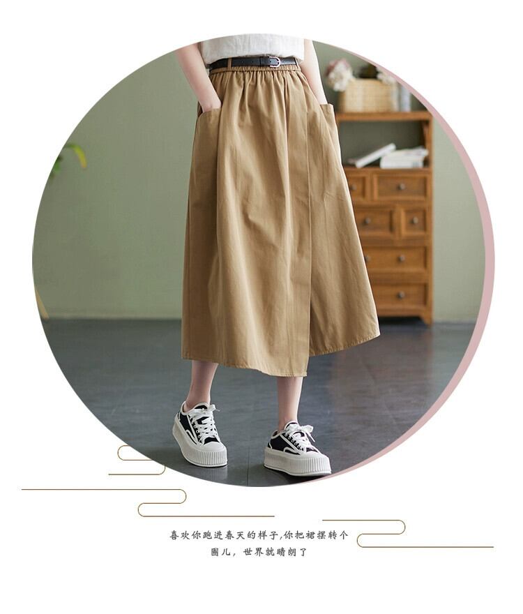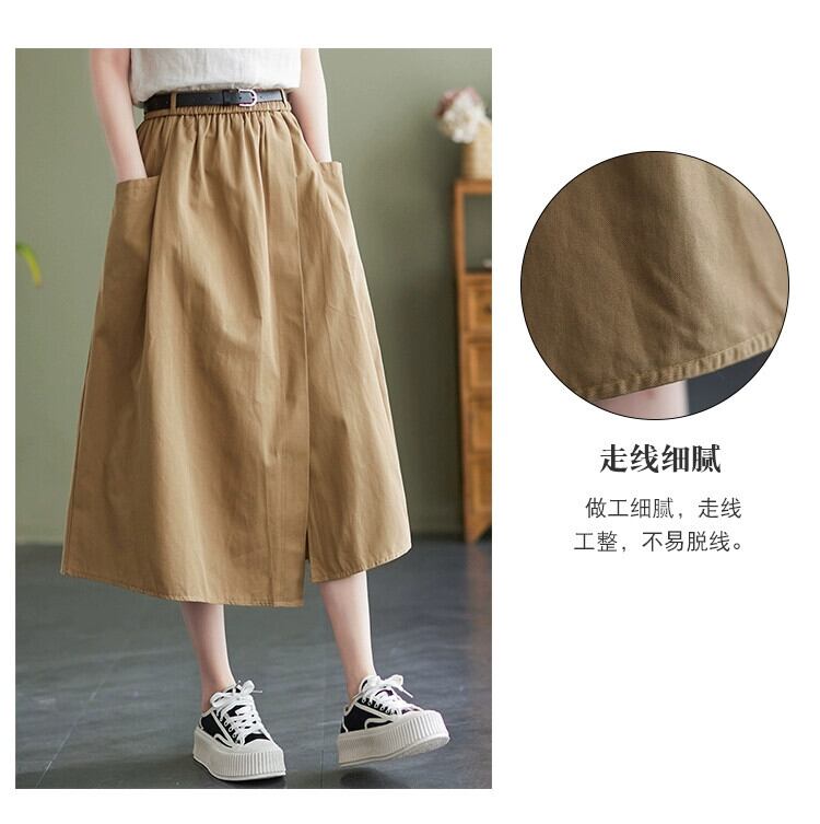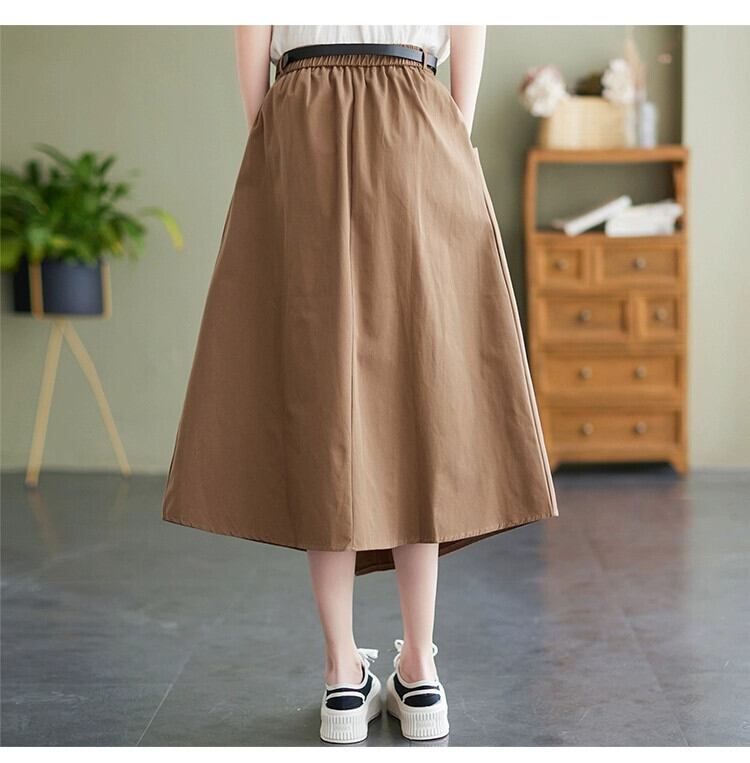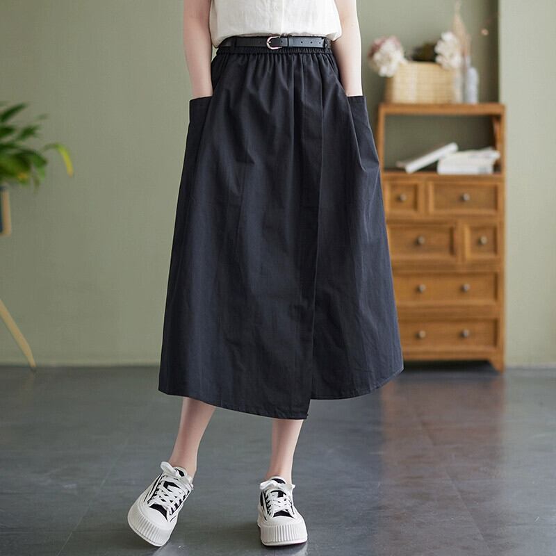 eign trade counter brand テールグッズ レディース ese リネン イレギュラースカート 万能ハイウエスト 綿麻 Aライン ミドル丈スカート コットン sine60352593970