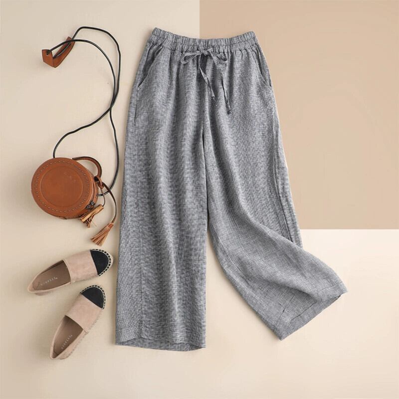 eign trade 激安ブランドテールグッズレディース綿麻ストレートワイドパンツゆったりレース千鳥格子リネン9点カジュアルパンツ コットン sine10348350117