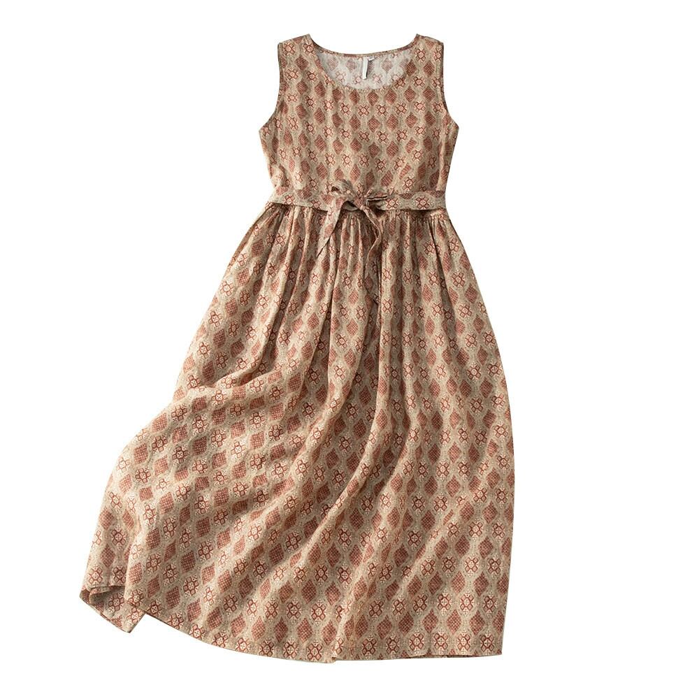 eign trade ese オリジナルビッグブランド撤退女性のラミープリントノースリーブドレス夏のウエストレースアップ綿とリネンのベストドレス コットン サマー 夏物 sine14904370084