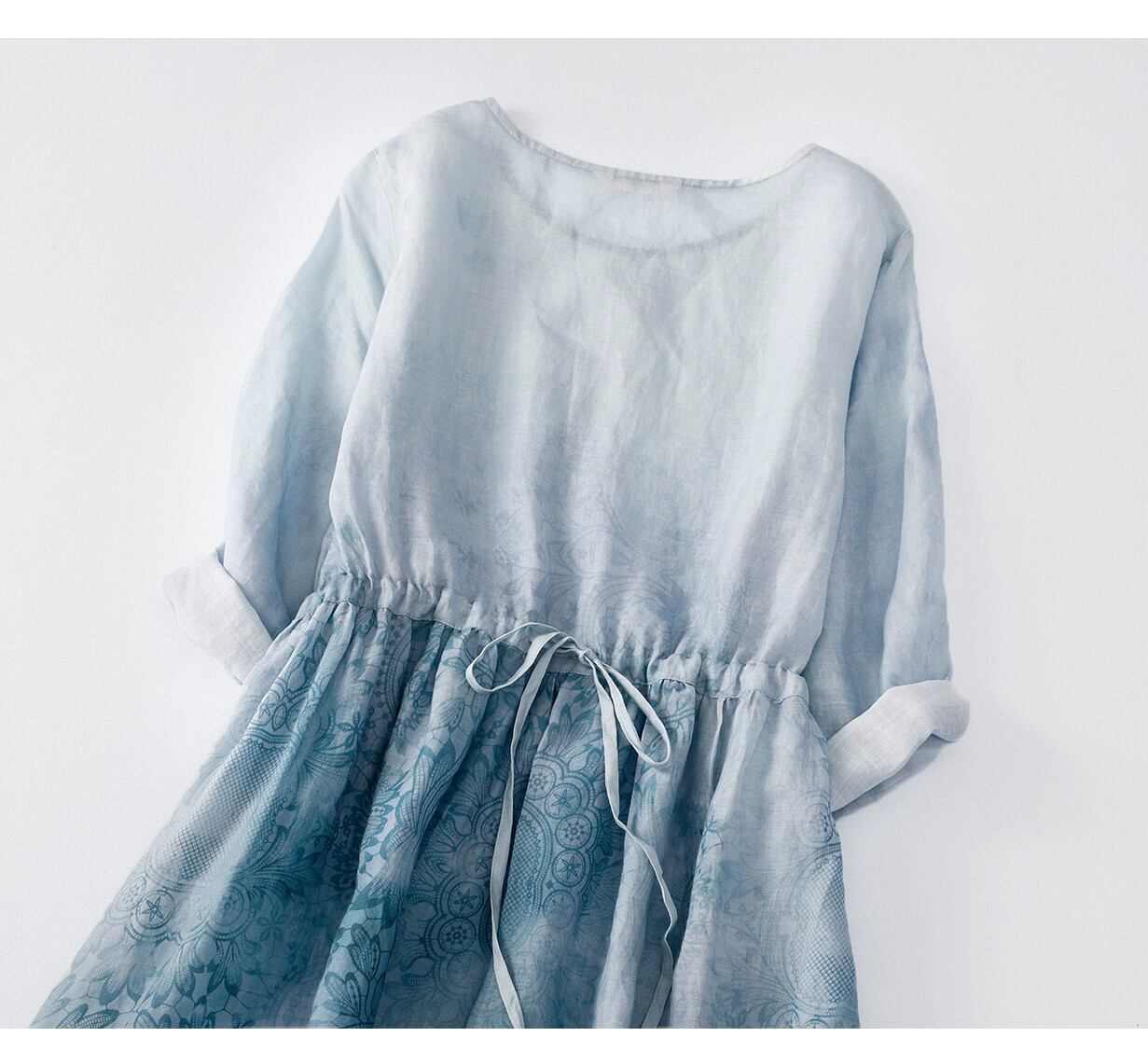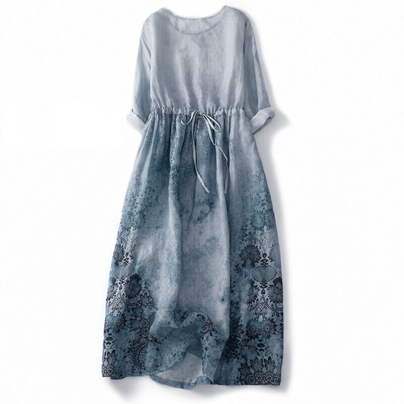 eign trade ese 有名カウンターグッズレトロプリントラミー半袖ドレスルーズ七分袖リネンロングスカート sine31243354075