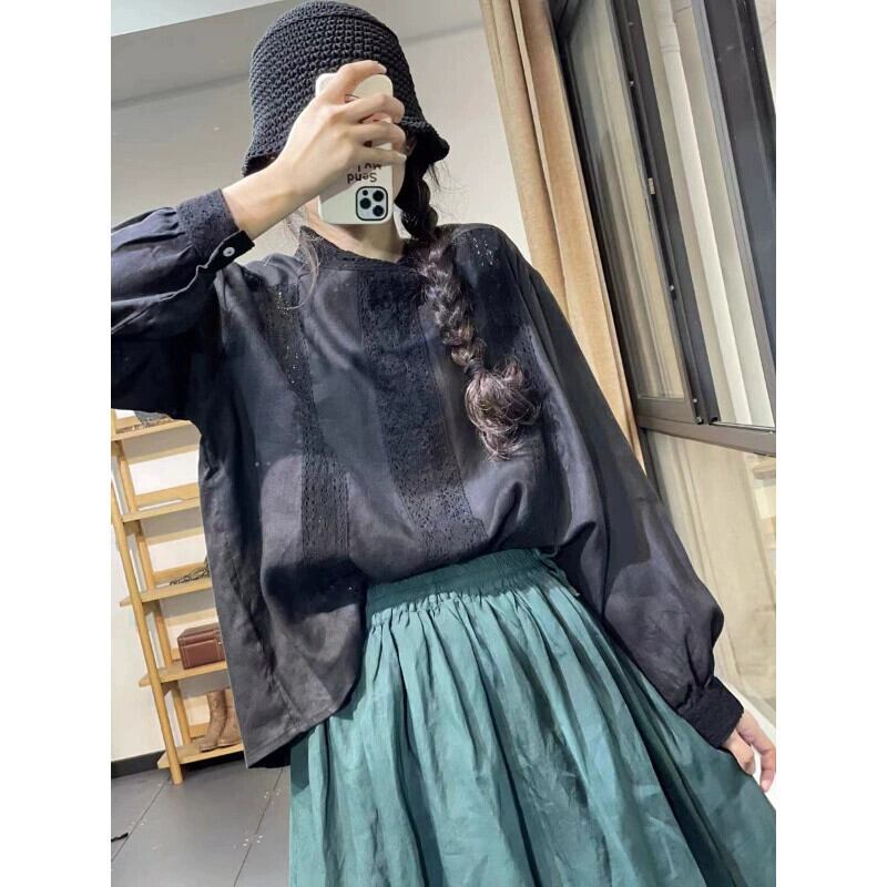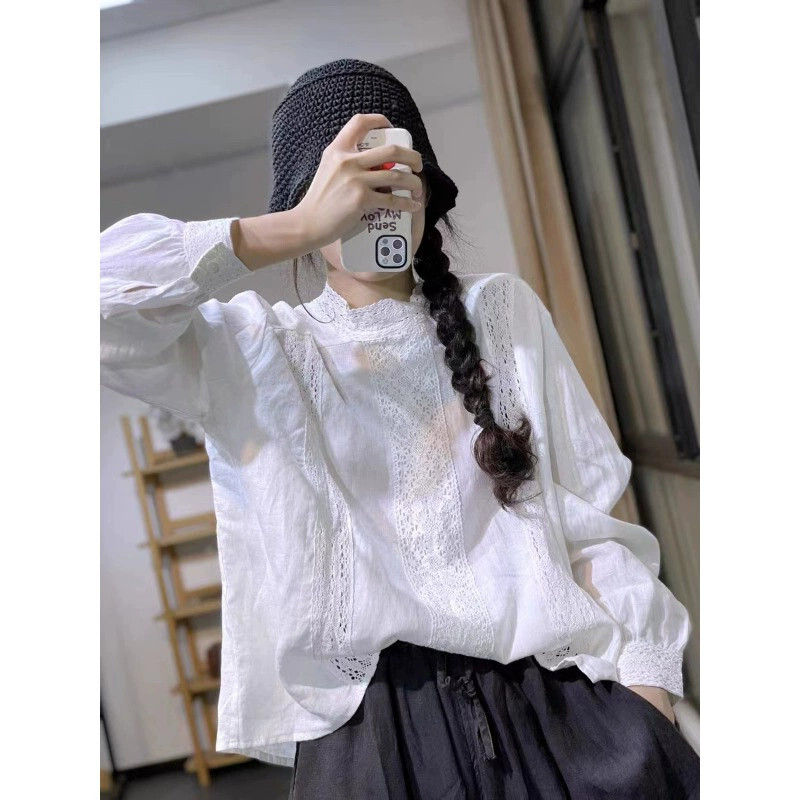 クリアランスクリアランスカウンター牛物品除去レディースエーゼレースステッチコットンとリネンシャツルーズプルオーバーリネントップ sine14130793943