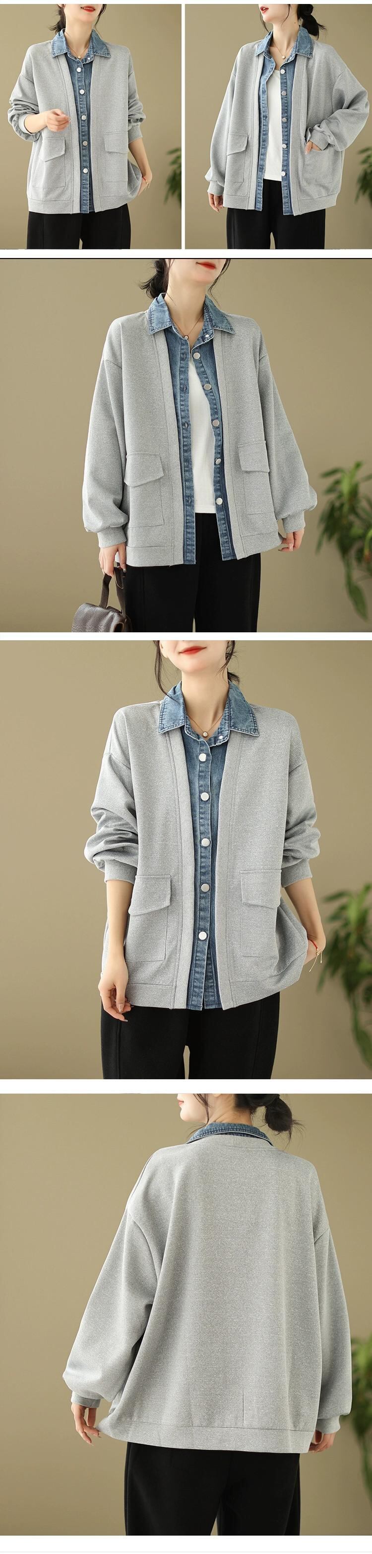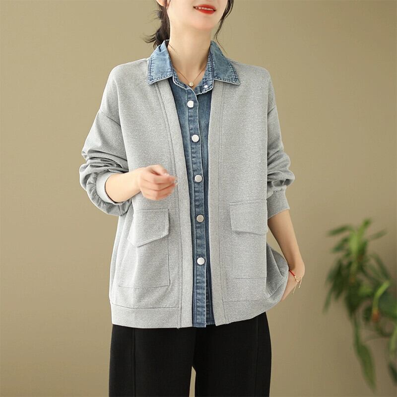 ディスカウントストアショッピングモール撤退レディースファッションスプライシング偽ツーピースデニムジャケットルーズ長袖野球ユニムトップ ロング sine25141442916