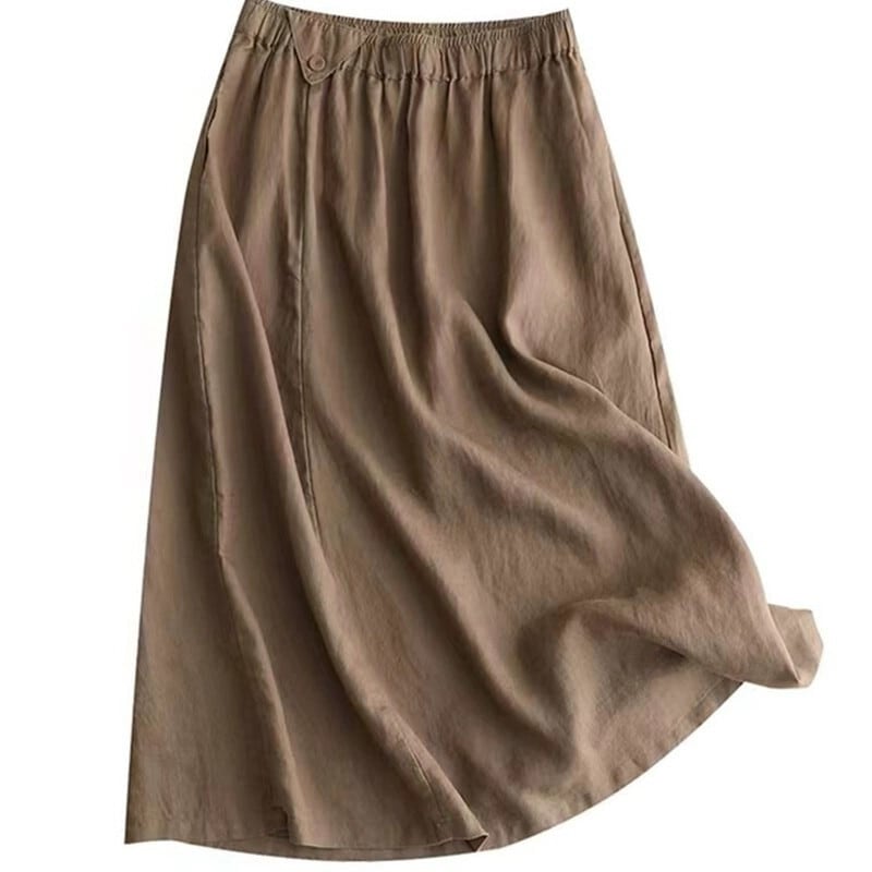 eign trade 割引ブランドテールグッズ女性のレトロな無地綿とリネンのフルレングススカートハイウエストカジュアルリネン a ラインスカート コットン Aライン ソリッドカラー sine82221353945